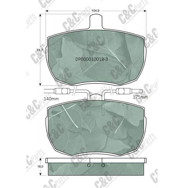 Disc pad set 104.9x74.7x18.0 + ind. round pin plug