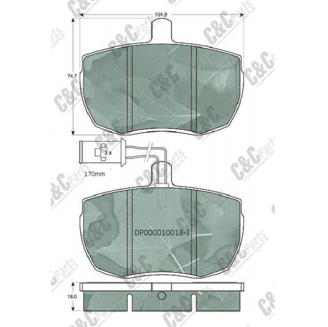 Disc pad set 104.9x74.7x18.0 + indicator 170mm