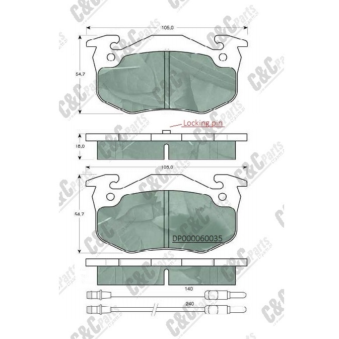 Disc pad set 105.0x54.7x18.0 + locking pin