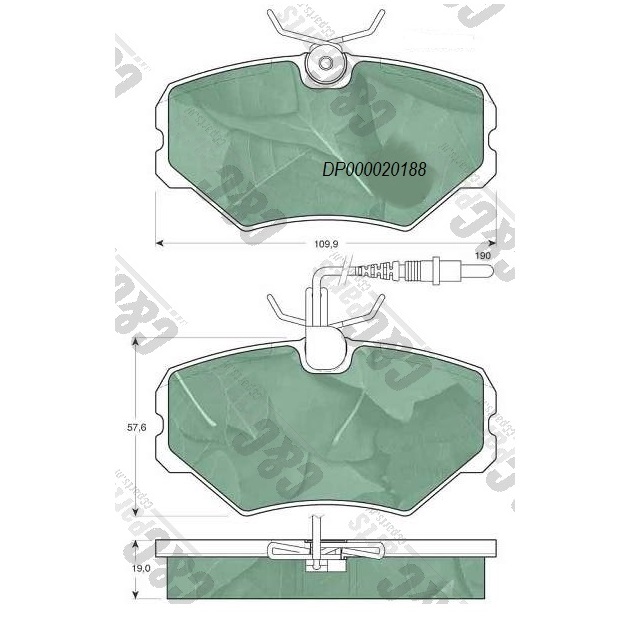 Disc pad set 109.9x57.6x19.0 + indicator
