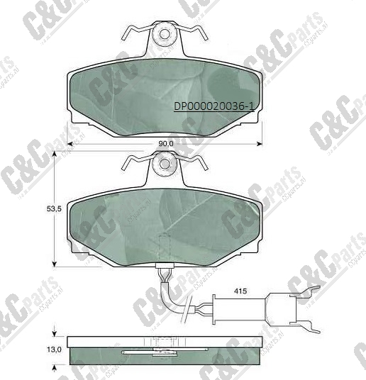 Disc pad set 90.0×53.5×13.0 connect. inside 2 pins
