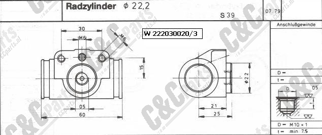 Wheel cylynder inl.M10-1< piston cone