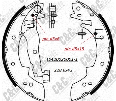 Lined shoe set of 4 228.6x42 with levers